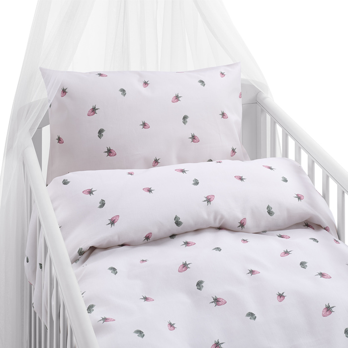 2-Dels Set Jordgubbsdröm Röd Spjälsäng