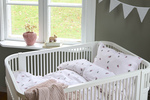 Bäddset bestående av ett örngott och ett påslakan med tryckt mönster. Passande storlek för spjälsäng och tillverkat i skön bomullskvalitet. Borganäs bäddset finns i flera olika mönster och färger.