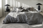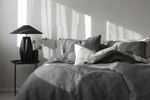 Påslakan och örngott tillverkade av 100% lin med dubbelstickade kantsömmar. Den höga trådtätheten ger en tät och fyllig kvalitet. Linne är ett material som är svalt och behagligt att sova i. Bäddsetet finns i flera olika färger.