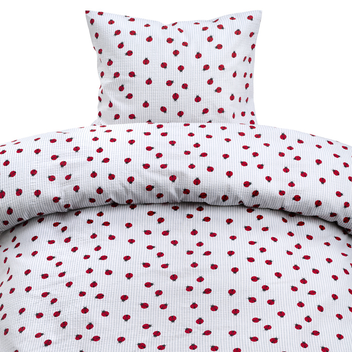 Påslakan och örngott i fin bäckebölja av 100% bomull. Crépe-effekten gör att bäddsetet känns svalt och skönt på sommaren, tack vare veckningen på tyget som ger extra luftcirkulation och andningsförmåga.