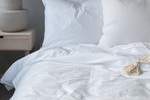 - Påslakan med hörnhål, örngott med kuvertöppning. Levereras i tygpåse