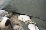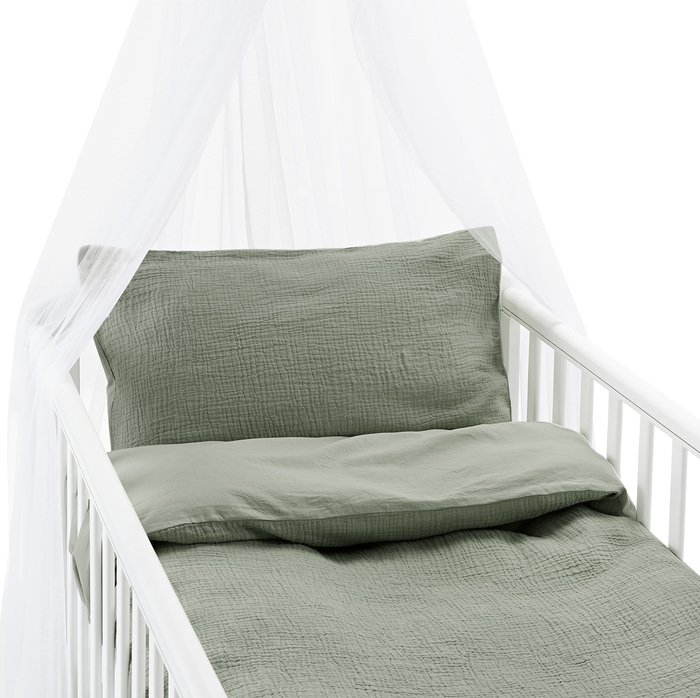 Bäddset bestående av ett örngott och ett påslakan med en krinklad framsida och slät baksida. Tillverkade i fin bomullspercale som känns svalt och skönt att sova i. Passande storlek för spjälsäng. Finns även i olika färger för både enkel- och dubbelsäng. Rolling påslakan och örngott bör vändas ut- och in vid tvätt, vi rekommenderar även att använda ett flytande tvättmedel. Detta för att bevara färgen så länge som möjligt och minska slitaget. Flytande tvättmedel är även bättre för vår miljö.