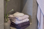 Borganäs Basic frotté är en slät öglefrotté. Handduken har hängare på kortsidorna samt ett klassiskt mönster i form av vävda bårder nedtill. Basic frotté har god absorptionsförmåga och finns i flera olika storlekar, från gästhandduk till badlakan. Välj bland flera olika färger.