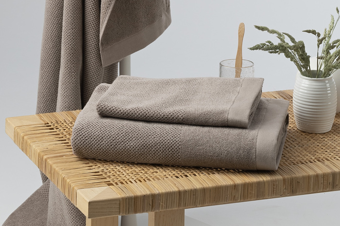 Enzo är en frottéserie i en lugn och naturlig färgskala som passar bra i badrummet. Handdukarna har en fin struktur med en kontrasterande slät bård samt bred kant nedtill. Handduken är tillverkad av 100% bomull och har rundade hängare på kortsidorna. Måttet på handuken är 50x70 cm.