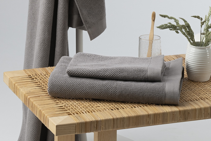 Enzo är en frottéserie i en lugn och naturlig färgskala som passar bra i badrummet. Handdukarna har en fin struktur med en kontrasterande slät bård samt bred kant nedtill. Handduken är tillverkad av 100% bomull och har rundade hängare på kortsidorna. Måttet på handuken är 50x70 cm.
