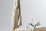 Enzo är en frottéserie i en lugn och naturlig färgskala som passar bra i badrummet. Badlakanet har en fin struktur med en kontrasterande slät bård samt bred kant nedtill. Badlakanet är tillverkat av 100% bomull och har rundade hängare på kortsidorna. Måttet på badlakanet är 90x150 cm.