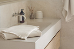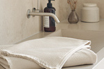 Borganäs Haze frotté är en serie handdukar och badlakan med våffeleffekt på framsidan och fransar på kortsidorna. Haze-serien ger badrummet den perfekta spa-känslan. Frottén är tillverkad av 100% bomull i en mjuk och skön kvalitet. Handduk och badlakan har hängare på båda långsidorna för smidig upphängning.