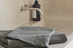 Borganäs Haze frotté är en serie handdukar och badlakan med våffeleffekt på framsidan och fransar på kortsidorna. Haze-serien ger badrummet den perfekta spa-känslan. Frottén är tillverkad av 100% bomull i en mjuk och skön kvalitet. Handduk och badlakan har hängare på båda långsidorna för smidig upphängning.