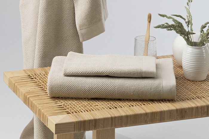 Borganäs Haze frotté är en serie handdukar och badlakan med våffeleffekt på framsidan och fransar på kortsidorna. Haze-serien ger badrummet den perfekta spa-känslan. Frottén är tillverkad av 100% bomull i en mjuk och skön kvalitet. Handduk och badlakan har hängare på båda långsidorna för smidig upphängning.