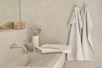 Borganäs Helle frotté är en serie handdukar, badlakan och dushmattor i stilren och modern design som passar i de flesta badrum. Frottén är tillverkad av 100% bomull i en mjuk och skön kvalitet. Badrumsmattan i storlek 50x70 cm har en snygg ram på framsidan, och tack vare en gramvikt på 700 g/m² så ligger den stadigt på badrumsgolvet.