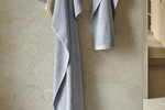 Borganäs Helle frotté är en serie handdukar, badlakan och dushmattor i stilren och modern design som passar i de flesta badrum. Frottén är tillverkad av 100% bomull i en mjuk och skön kvalitet. Badlakan i storlek 90x150 cm har tre bårder upptill och fem nedtill, samt rundade hängare på båda kortsidor för smidig upphängning.