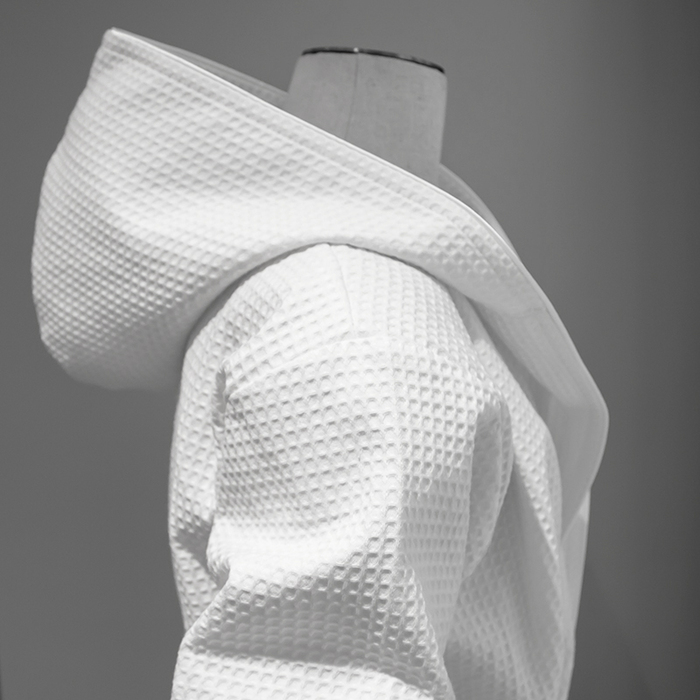 En elegant och nätt rock i mjuk våffelkvalité med fin satinpasspoal. Morgonrocken har en luva som ger den ett sportigare utseende och lanske lite extra värme. Denna rock är perfekt för t.ex. Spa-hotell som har utomhuspool. Rocken finns tillgänglig i två olika storlekar, medium och extralarge. Gap är ett mycket bra val ur miljöhänsyn. Tvätt och torktumling blir mer effektiv jämfört med en tjock velour/frottérock. Även frakten till och från tvätteriet blir mer miljövänlig då det går 2-3 våffelrockar på 1 velour/frottérock i volym. Vill man sin egen unika rock går det utmärk att få sin logotyp broderad på rocken. Kontakta oss vid intresse.
