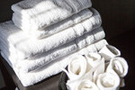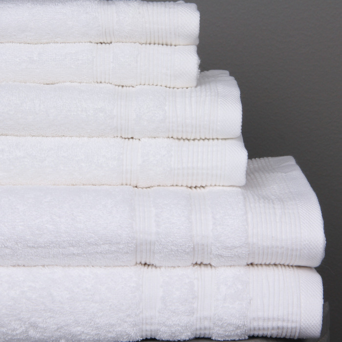 En kraftig, fluffig och mjuk frotté med en diskret men dekorativ bård. Finns i flera olika färger och storlekar.