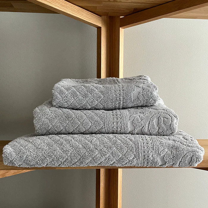 Jacquardvävd frotté med vårt vackra Luxury-mönster. Handdukens utseende går att variera genom olika vikningar. Finns i flera storlekar samt en matchande badrumsmatta.
