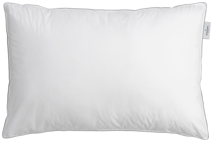 Borganäs of Sweden kudde i slitstark bomullscambric med grå passpoal runt om och en fyllning av 1250 gram hålfiber. Kudden är extra stor och ger bäddningen den rätta hotellkänslan. Finns i flera olika mått.