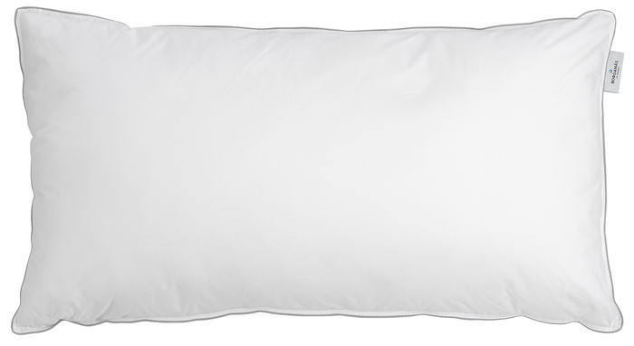 Borganäs kudde i slitstark bomullscambric med grå passpoal runt om. Kudden är extra lång och har en fyllning av 900 gram hålfiber som ger den rätta hotellkänslan. Kudden finns i flera olika mått.