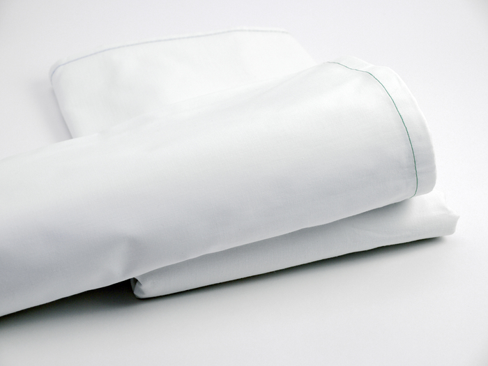 Hotellakan tillverkat i bomull och polyester. Lakanet finns i enkelstorlek (150x280 cm) med grön märktråd, i dubbelstorlek (240x280 cm) med blå märktråd och extra stor storlek (240x290 cm) med grön märktråd. Bomull och polyestermixen gör lakanet extra tåligt och har en snabbare torktid. Med olika märktrådar för de olika storlekarna är det lätt att sortera och hålla ordning. Lakanet har en trådtäthet på 136 TC. Dessa hotellakan är bulkpackade och ej konsumentförpackade.