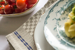 En fin servett med lite rustik, lantlig känsla. Servetten är vackert naturfärgad med ett rutmönster, och finns med röd eller blå rand. Alice är fin både som servett och kökshandduk.