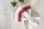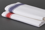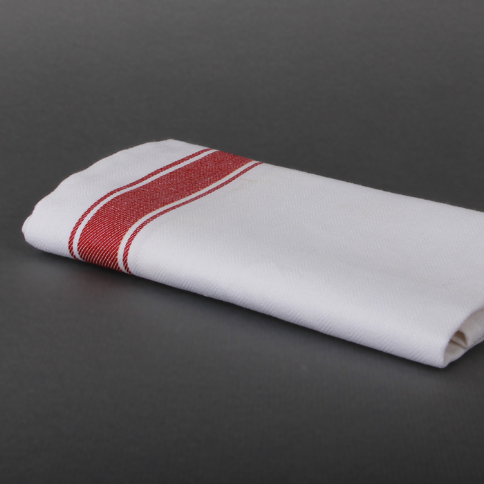 Traditionell och stilren servetthandduk i fiskbensstruktur. Använd som servett eller kökshandduk. John finns med blå eller röd rand.