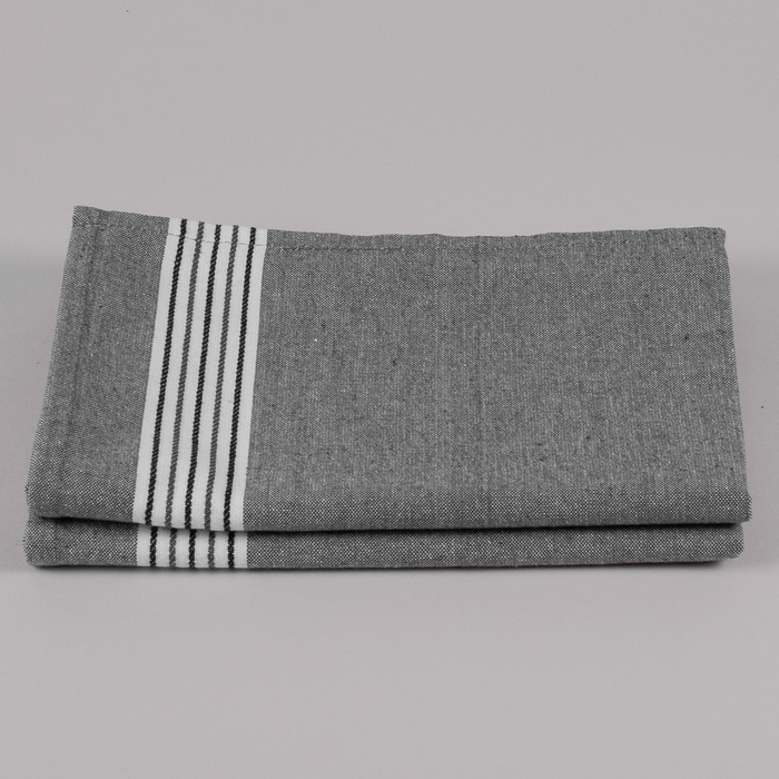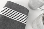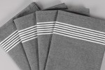 En hållbarare servett som är tillverkad helt i återvunnen bomull. Servetten är vackert gråmelerad, med vita bårder. Roy är fin både som servett och kökshandduk.