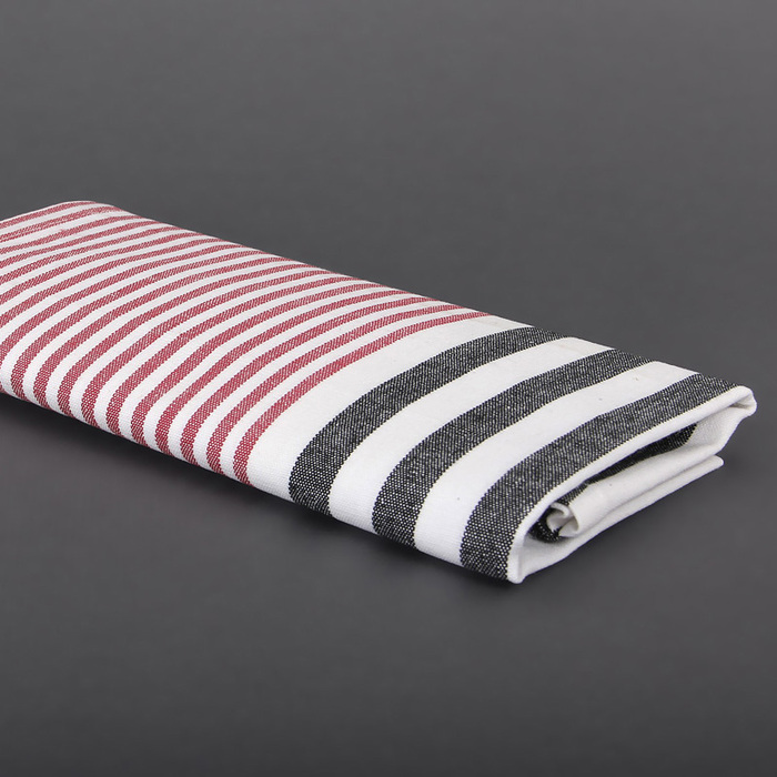 Elliot är servetten som kan växla utseende enkelt och snabbt genom olika vikningar. Duka med lite extra färg eller bara svart&vitt, på längden eller tvären. Servetten finns med beigea eller röda ränder.
