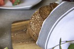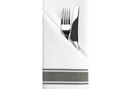 Diskret och smakfull servett i fiskbensstruktur med olivgrön rand. Ge dukningen olika utseende genom att vika randen på längden eller tvären.