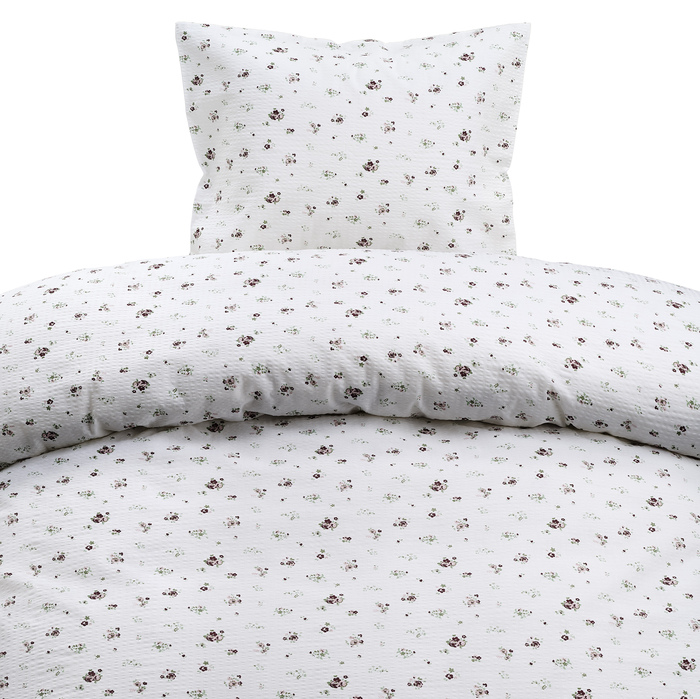 Påslakan och örngott i fin bäckebölja av 100% bomull. Crépe-effekten gör att bäddsetet känns svalt och skönt på sommaren, tack vare veckningen på tyget som ger extra luftcirkulation och andningsförmåga.