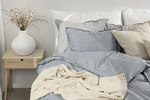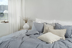 Bäddset bestående av ett örngott och ett påslakan. Bäddsetet har 2-nålssöm, en snygg chambrayeffekt och är tillverkat i mjuk och skön bomull. Borganäs bäddset finns i flera olika mönster för både enkel- och dubbelsäng.