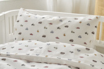 Bäddset bestående av ett örngott och ett påslakan med tryckt mönster. Passande storlek för spjälsäng och tillverkat i skön bomullskvalitet. Mönstret finns även tillgängligt på bäddset för enkelsäng.