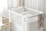 Bäddset bestående av ett örngott och ett påslakan med tryckt mönster. Passande storlek för spjälsäng och tillverkat i skön bomullskvalitet. Borganäs bäddset finns i flera olika mönster och färger.