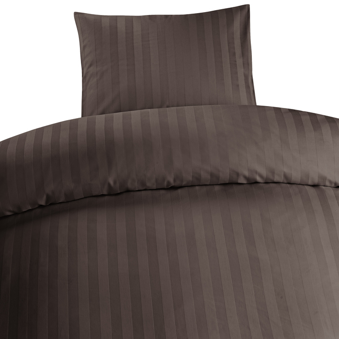 Bäddset bestående av ett örngott och ett påslakan i bomullssatin med en fin lyster. Klassiskt mönster med vävda matta och blanka ränder. Satin-serien finns i flera olika färger för både enkel- och dubbelsäng.