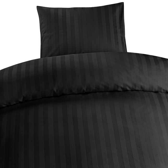 Bäddset bestående av ett örngott och ett påslakan i bomullssatin med en fin lyster. Klassiskt mönster med vävda matta och blanka ränder. Satin-serien finns i flera olika färger för både enkel- och dubbelsäng.