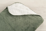 En mjuk pläd tillverkad av 100% polyester med härlig velour på framsidan och fluffig sherpa på baksidan, perfekt att svepa om sig i soffan. Pläden har dekorativa sömmar på kanterna och ett fint zig zag mönster på framsidan. Måtten på pläden är 130x170 cm.